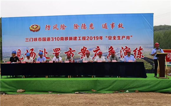 演练结束后,韩学刚对本次演练进行点评,梁景智对本次演练进行总结,他指出此次演练是三门峡市国道310南移工程各参建单位贯彻落实《安全生产法》法定责任的体现,也是检验现场处置的科学性、实用性、执行力的重要举措,通过演练,提升了各参建单位和人员应对突发事故的应急处置能力,提高了应急救援能力。各参建单位要以此为契机,继续完善各种应急预案,增强对事故伤害的认识,强化对应急处理流程的掌握,确保国道310南移项目安全生产零事故。