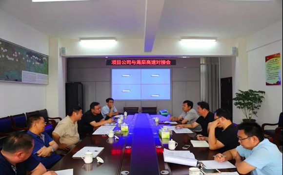 7月11日,国道310南移项目与渑栾高速项目交叉工程对接会在项目公司二楼会议室召开。项目公司执行董事、总经理周鹏、总经理助理黄涛以及渑栾高速项目公司董事长刘威、副总经理董光普出席会议,双方技术人员与设计代表参加会议,并就国道310南移项目与渑栾高速交叉产生问题及省道247加宽施工技术方案进行研究讨论。
