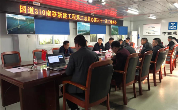 11月11日,国道310南移项目在八分部召开监理例会,项目公司总经理助理黄涛、第三总监办总监乔雷、八分部及八分部三工区项目经理、项目公司、各驻地办、管线保护单位代表参加会议。